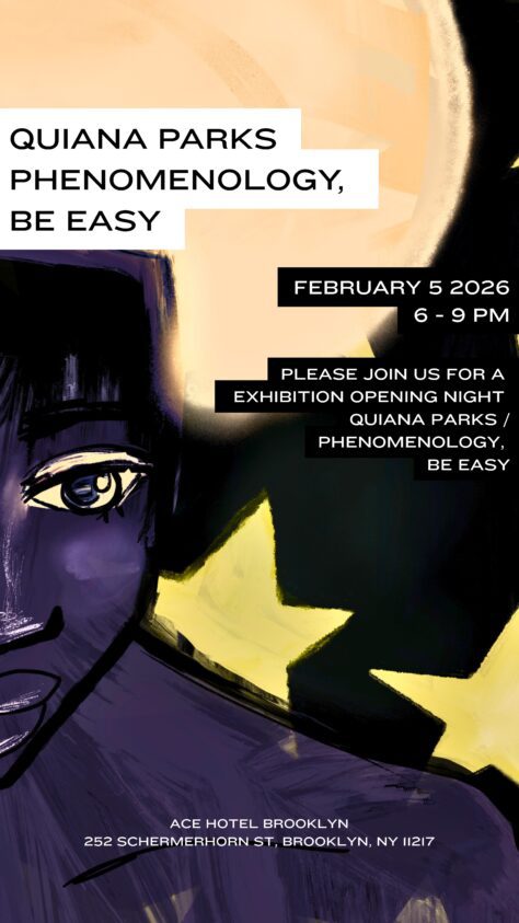 Phenomenology, Be EasyOpening Reception An exhibition curated by Quiana Parks in collaboration with Ace Hotel Brooklyn, on view through March 12, 2026. Opening ReceptionFebruary 5, 6–9 PMThe Gallery at Ace Hotel Brooklyn About the Exhibition Phenomenology, Be Easy is about being a person in all this. After everything we’ve seen, everything we’ve been asked t