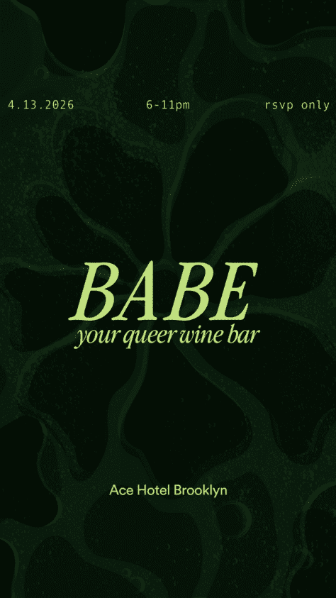 BABE Wine Bar returns to Ace Hotel Brooklyn. At BABE, all wines are curated and poured by Queer BABE sommeliers. BABE also offers N/AN options. BABE is your Queer wine bar – a safe space for Queer babes to enjoy and learn about wine. Join us Monday, April 136–11 PMThe Lobby at Ace Hotel Brooklyn Drop 1: March 30, 10 AMDrop 2: March 30, 7 PM