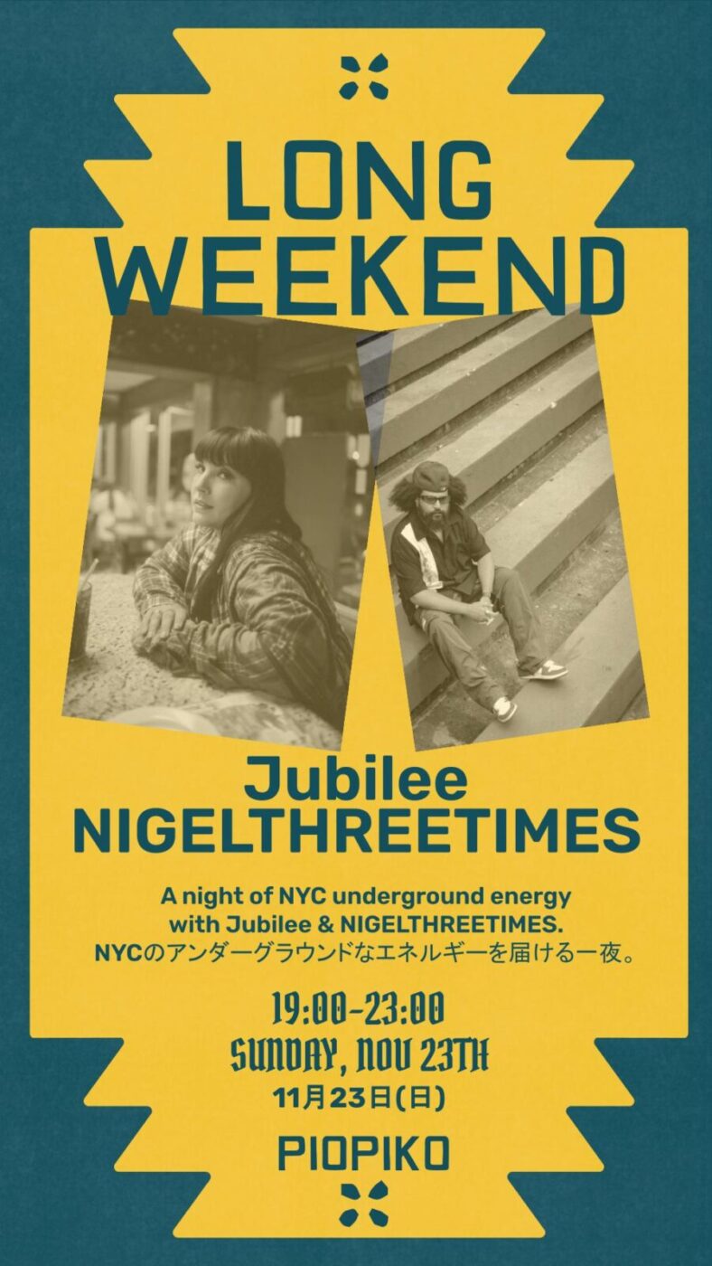 Ace Hotel Kyoto welcomes two of NYC’s finest — Jubilee and NIGELTHREETIMES — for a special DJ night, bringing high-energy underground sounds straight from New York to Kyoto.