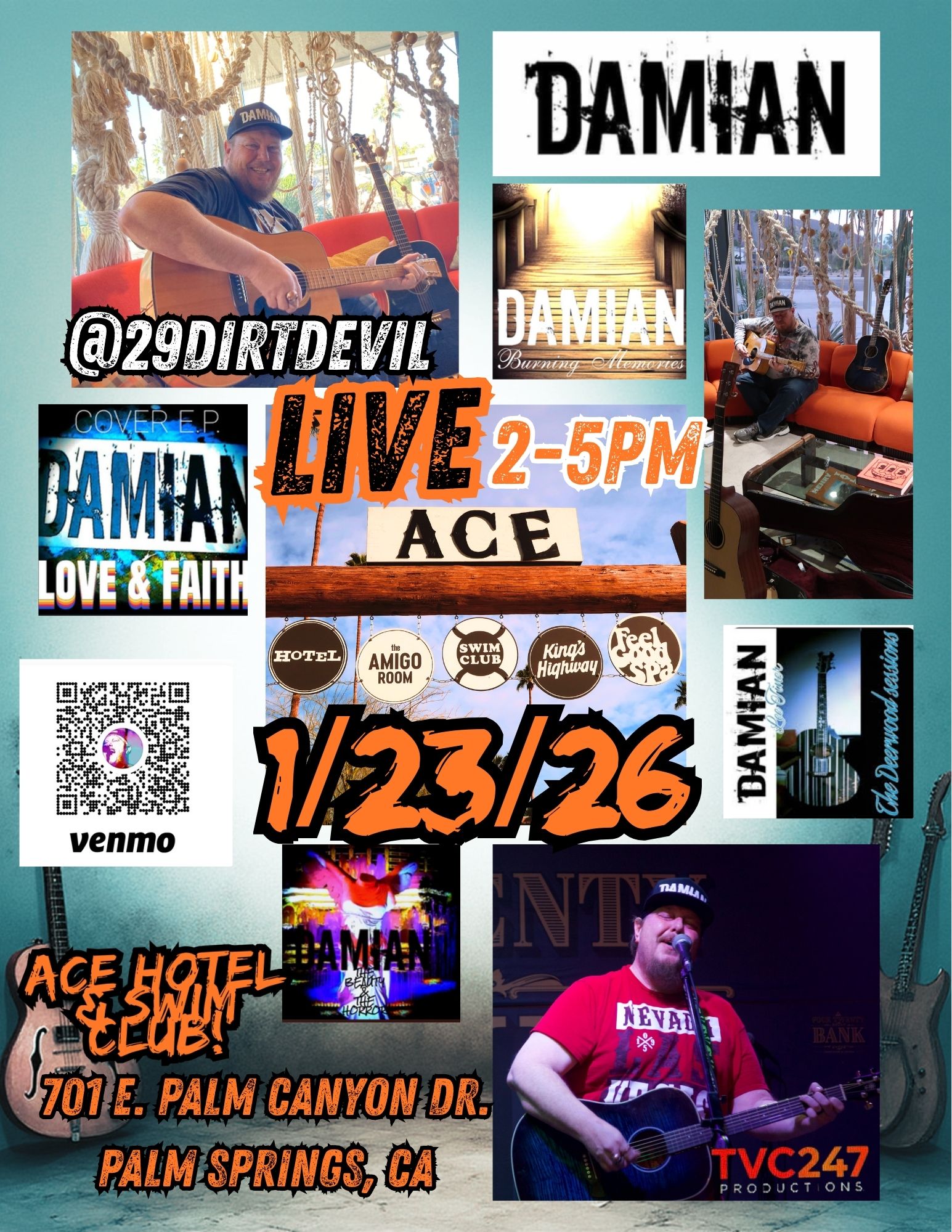 Our next artist is bluesy high desert musician Damian Tiner on 01.23.26