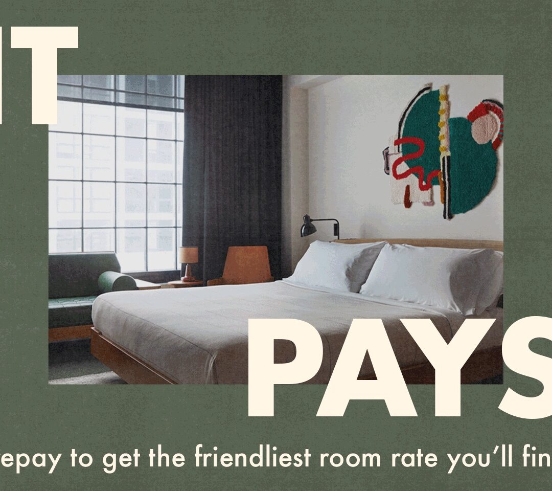 We like up-front types. Like when there’s spinach in our teeth and you tell us. Better yet, when you prepay your room we’ll give it to you at our friendliest rate. Probably because we’re grateful about the spinach thing. Either way, book a nonrefundable reservation, pay in advance, and we’ll sling the savings your way.