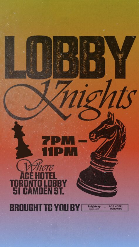 Join us for Lobby Knights in partnership with Knightcap — Whether you’re a seasoned strategist or learning the ropes, everyone is welcome to join the game. Expect a relaxed atmosphere, inviting spaces, and plenty of room to connect with fellow players over classic cocktails and warm conversation. Bring a friend or challenge someone new—here, we take our time