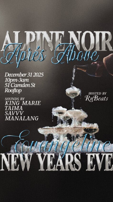 Alpine Noir — NYE December 31 at 10pm High above the city, winter glows in black and silver. This New Year’s Eve, ascend to Evangeline for Alpine Noir — a rooftop soirée draped in chalet warmth and shadowed elegance. Sip Champagne, move at your own pace, and welcome the new year under a canopy of stars. Your ticket includes a glass of bubbles at midnight, pa