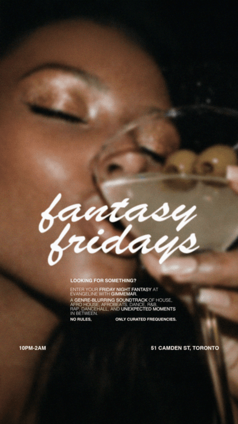 Step into Fantasy Fridays with Gimmemar — where the cocktails are smooth, the rooftop is glowing, and the sounds move from Brazilian funk to R&B classics and Afrohouse. A Friday night made for letting go. GIMMEMAR is a Toronto-based DJ with over a decade of experience, known for refined, high-energy DJ sets. Drawing from her Balkan roots and global influ