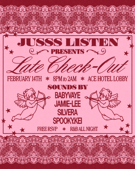 Valentine’s Day in the lobby. A special JUSSS LISTEN experience with R&B and neo-soul all night, led by an all-women DJ lineup. JUSSS LISTEN is a radio show created by Toronto-based DJ SAVVV, dedicated to lovers of R&B, future beats, and neo-soul. Originally launched on Toronto’s community radio station ISO four years ago, the show has since evolved