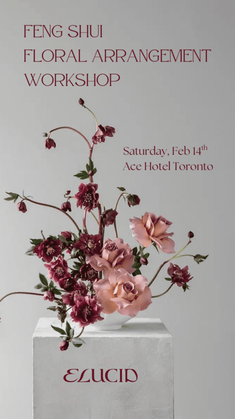This Valentine’s Day, we invite you into an immersive workshop that blends the art of floral arrangement with the ancient wisdom of Feng Shui; exploring how beauty, balance, and energy shape the spaces we inhabit and the relationships we nurture. ABOUT ELUCID Elucid Society is a Toronto based collective dedicated to creating intentional spaces that foster au