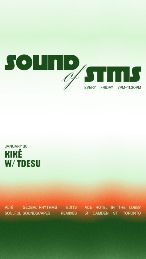Stms (pronounced “Stems”) is a platform showcasing DJs, music producers, & remix culture through events in Toronto. Launched in 2023 by organizer Tdesu, Stms has hosted over 20 events featuring some of Canada’s top sound selectors and international guests from New York, Antwerp, Melbourne, and more. “Sound of Stms” invites a different guest DJ every Fri