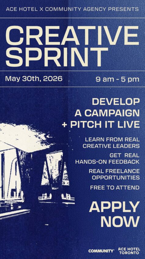 Creative SprintAce Hotel Toronto × Community Agency A one-day design session shaped by collaboration, curiosity and a live brief. Community is a multidisciplinary agency grounded in branding and design, working across disciplines and borders. Together, we bring a room of designers, writers, strategists and makers to work through